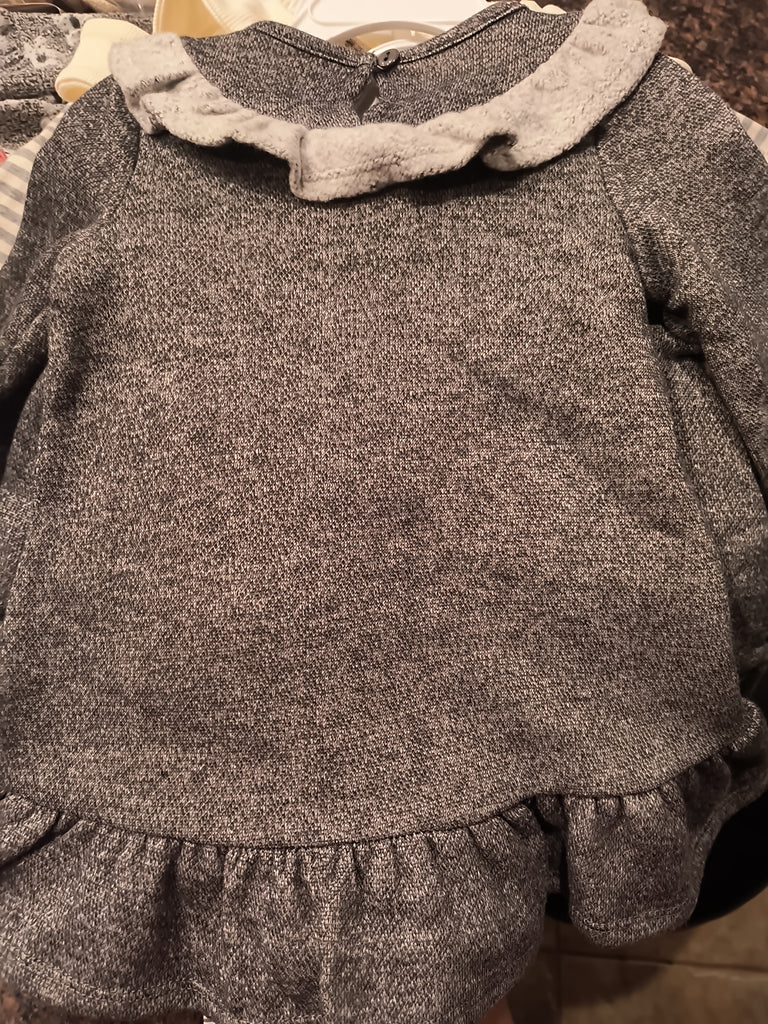 This adorable two-piece set features white and grey snow leopard print leggings paired with a long-sleeve dark heather grey tunic. The tunic is charmingly detailed with small silver bows on the sleeves and neckline, plus a playful appliqued and embroidered leopard heart and cat design. Perfectly sized for infants 12-24 months, this outfit combines comfort and cute for your little one’s everyday adventures.